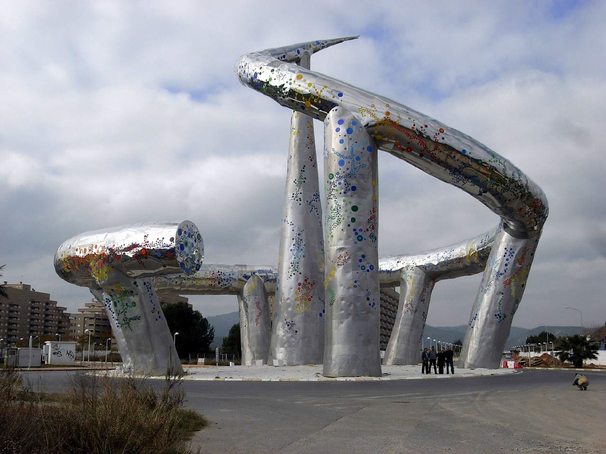Vom Hinterland geht es auf gut ausgebauten Straßen zügig zurück an die Küste nach Oropesa. Die im Winterschlaf liegende Hotelstadt begrüßt ihre Gäste am Ortseingang mit einem monumentalen futuristischen Bauwerk.